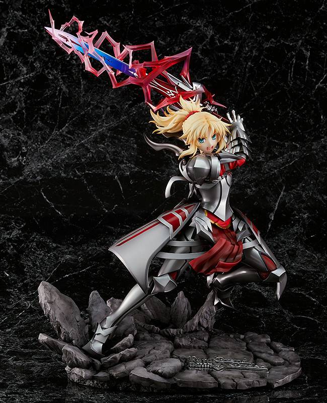 Del popular juego para teléfonos inteligentes "Fate/Grand Order" llega una figura a escala de la sirvienta de la clase Saber, Mordred, en su 2ª aparición en la Ascensión. Mordred ha sido recreada en el momento en que blande su espada Clarent, desatando un golpe devastador.