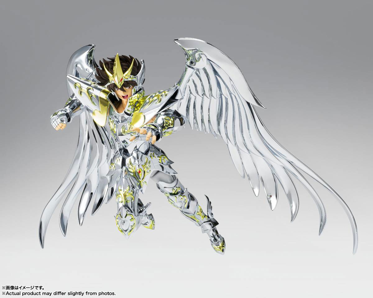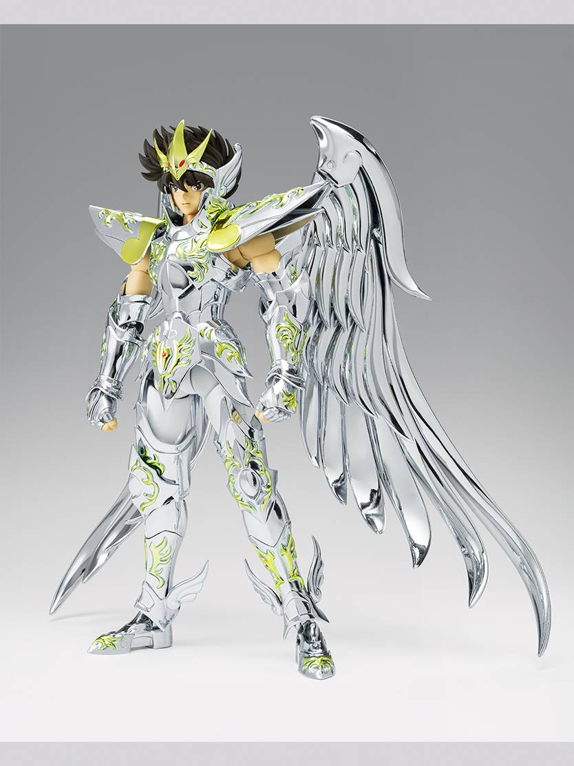 -"Saint Cloth Myth Pegasus Seiya (God Cloth)", lanzado en 2008, ya está disponible en Saint Cloth Myth EX después de 16 años. Además de un modelo considerablemente revisado basado en la animación de la obra, incluye numerosas piezas opcionales que amplían su valor de juego.