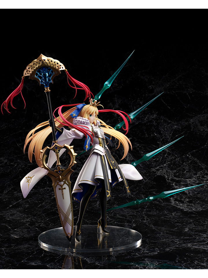 Del popular juego para móviles Fate/Grand Order, ¡llega la Tercera Ascensión de Altria Caster! Tras el lanzamiento de su Segunda Ascensión, deja atrás su apariencia femenina para adoptar un estilo más majestuoso en esta figura a escala 1/7. El traje de Altria, su cabello suelto y sus hermosos accesorios están maravillosamente representados con exquisito detalle. Los fans quedarán encantados con la meticulosa atención prestada a su color y diseño. Forjado por el dios del fuego, su Bastón de la Selección, que alberga una gran espada, está esculpido con increíble detalle y un acabado impresionante.